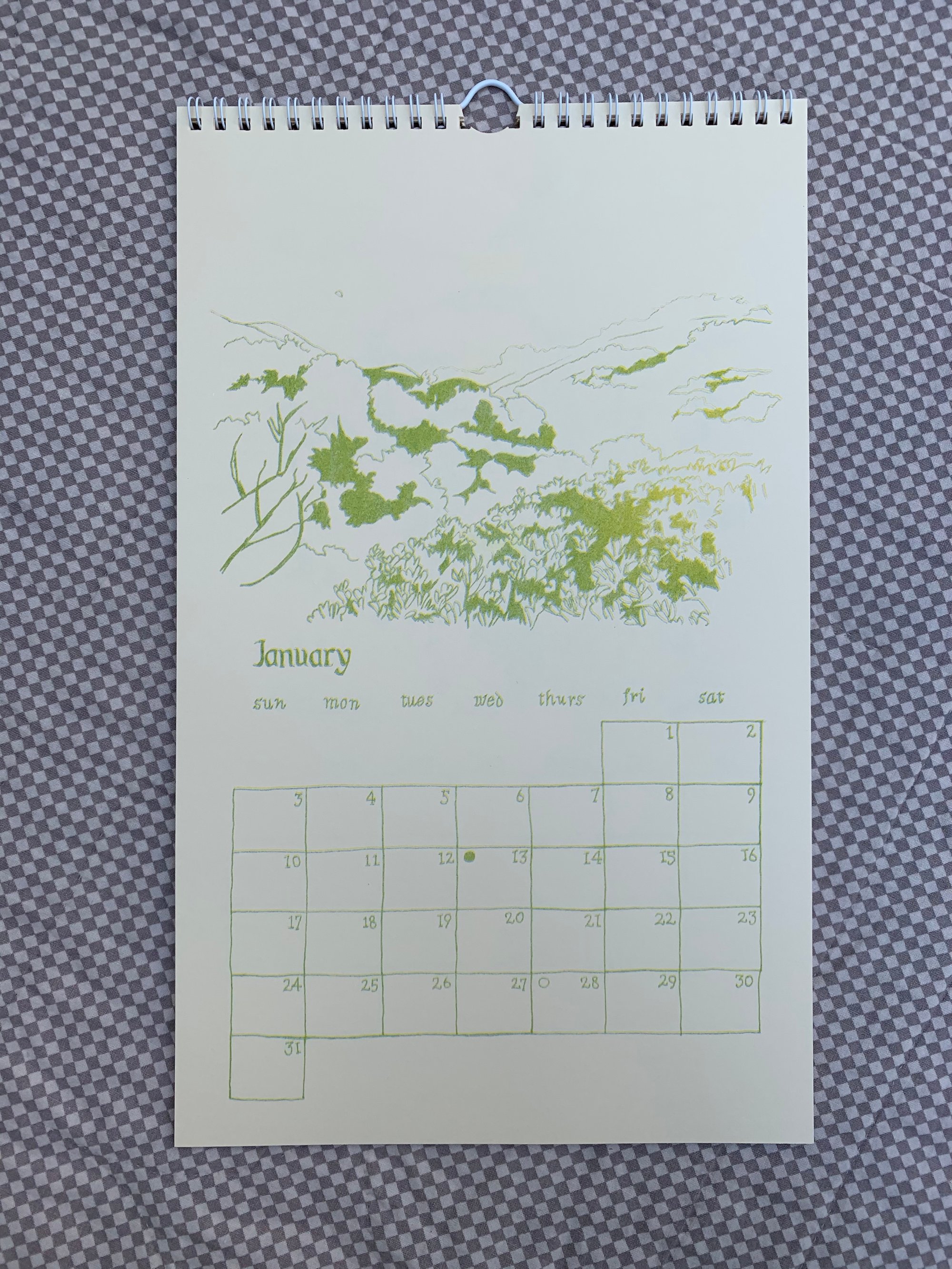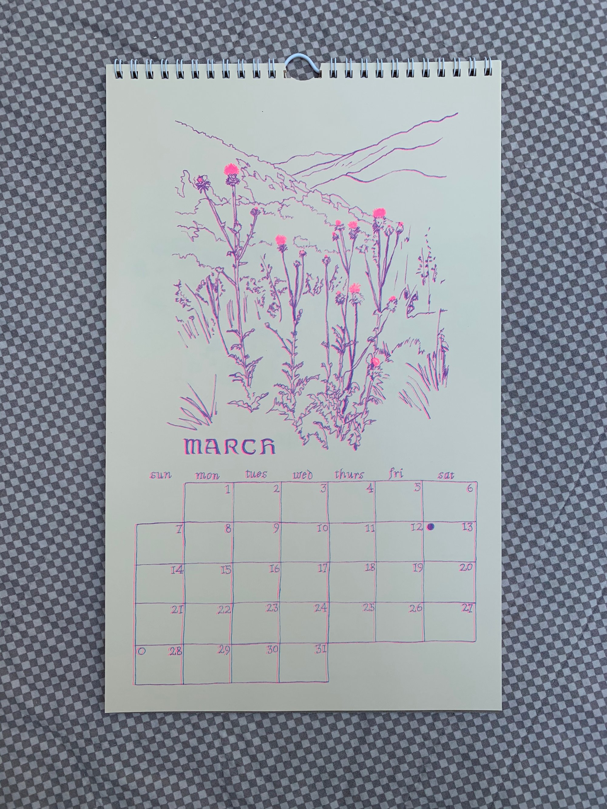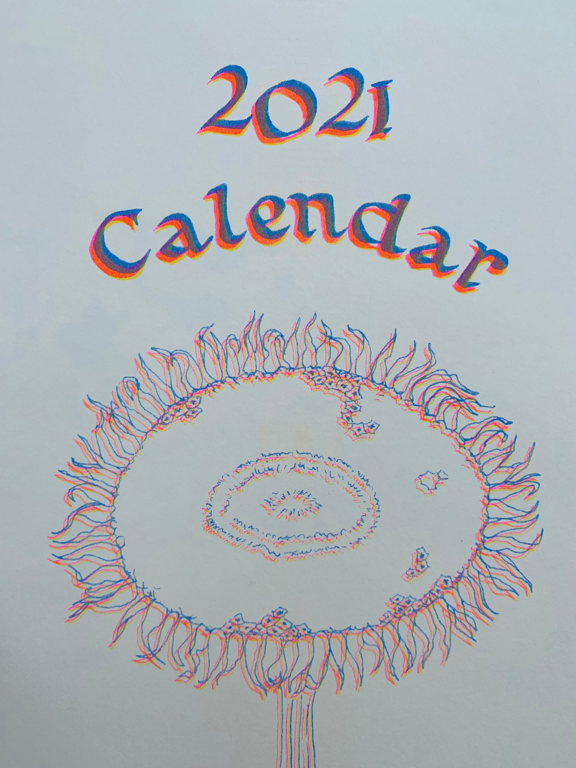 12 month wall calendar, risograph printed with Matt Katsaros in San Francisco.
