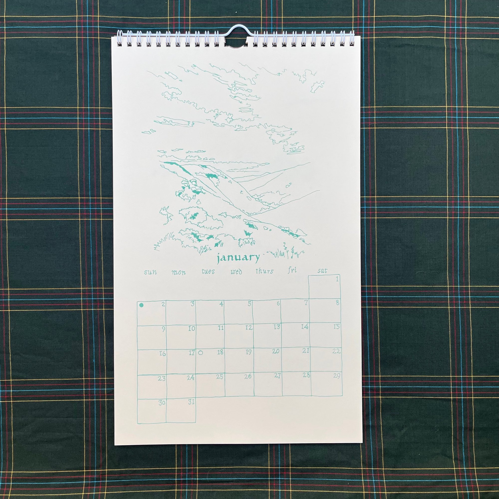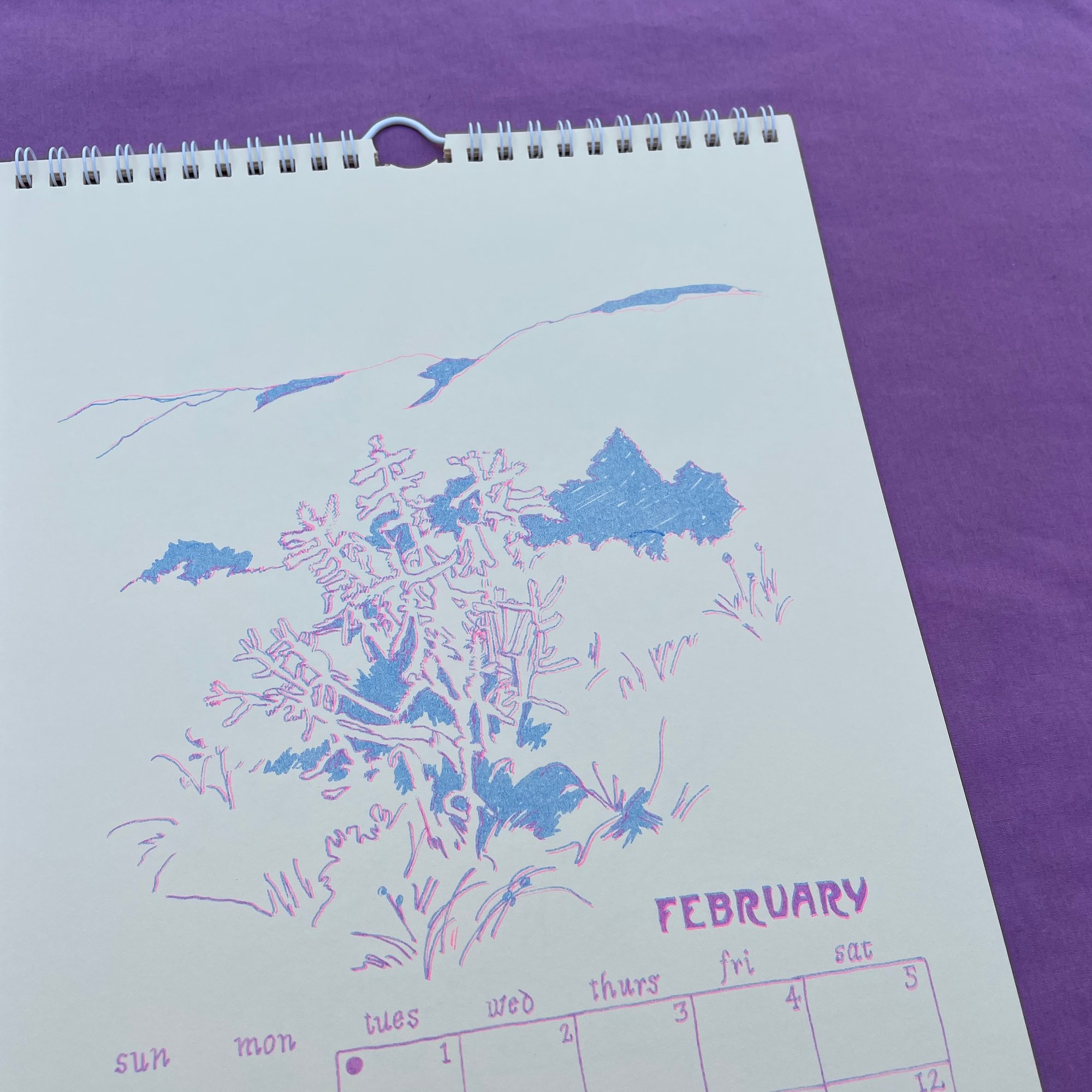12 month wall calendar, risograph printed with Matt Katsaros in San Francisco.