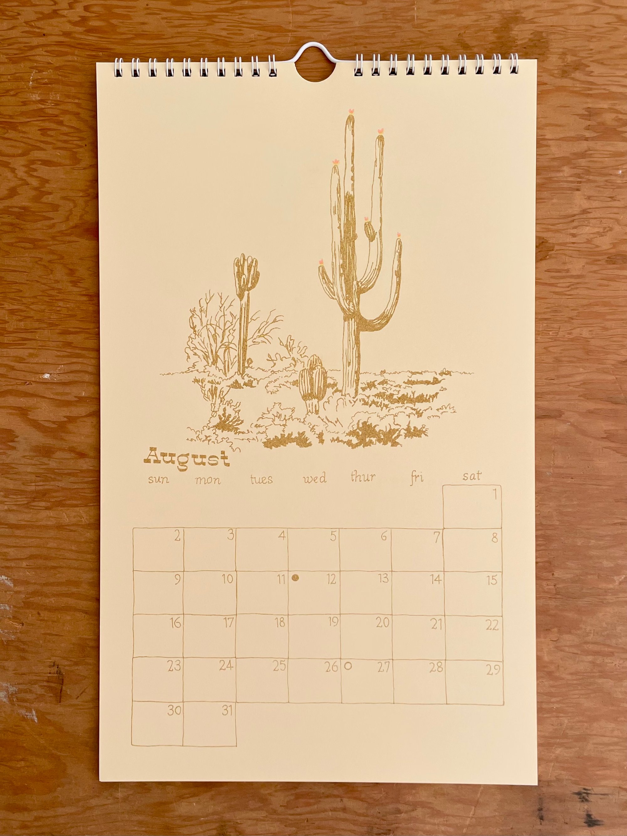 Each calendar month is riso printed on cream paper and includes the full and new moon phases.